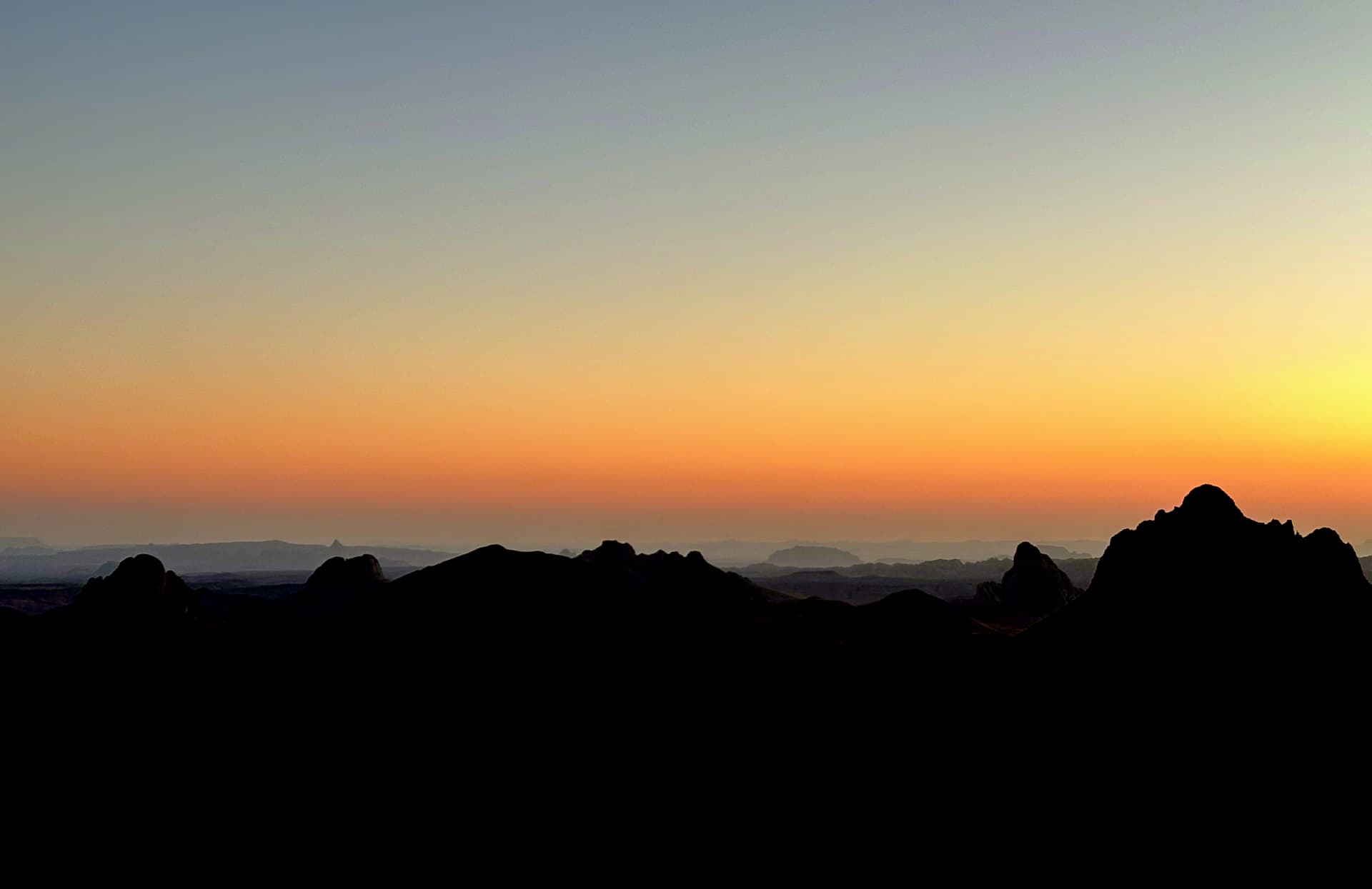 Cette série photographique a été glanée au cours de marches à pied dans le Tassili N’ajjer et le Hoggar, en Algérie, entre 2024 et 2025. Artiste et guide chez Terres d’Aventure, Ruben Brulat accompagne des groupes de l’infini Sahara aux reliefs par delà le cercle polaire. Depuis 15 ans, il arpente les continents à pied. Sa pratique artistique se compose de performances, de photographies, de poésies et d’installations. Passionné par les milieux désertiques, polaires et montagnards, ce provençal de naissance a été exposé dans de nombreuses galeries et musées en Europe, récemment au Musée National de la Montagne à Turin, et au Centre d’Art du Château d’Aubenas. Il le dit lui-même : « Je marche sur les sentiers en partage pour habiter le monde d’un pas à l’autre. »