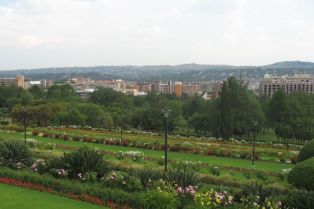 Accueil par votre guide francophone à l’aéroport de Johannesburg et route vers la capitale administrative du pays, la ville voisine de Pretoria. Selon les vols et l'heure d’arrivée, visite de la ville et des fameux jardins d'Union Buildings qui surplombent celle que l’on surnomme "la ville aux jacarandas" pour ses nombreux arbres aux fleurs violettes.