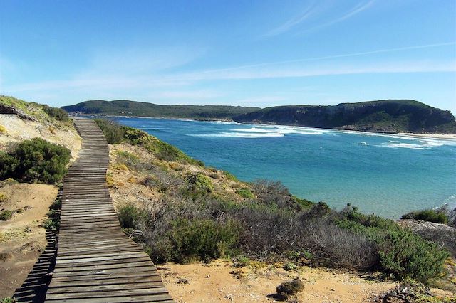 Aujourd'hui, nous prenons la route vers l’ouest et le parc de Tsitsikamma, aux portes de la Garden Route. Votre logement est situé au bord de l'Océan Indien, sur le site de Storms River Mouth, au coeur du Parc. Nous nous y installons en chalets pour les deux prochaines nuits.