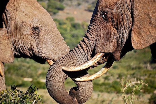 ** Troisième parc national sud-africain par la taille, Addo Elephant accueille la plus forte concentration de pachydermes du pays, ainsi qu’une multitude d’antilopes et de prédateurs. Les fameux Big 5 sont présents et nous tâcherons de les apercevoir à bord de véhicules ouverts, accompagnés de Rangers.