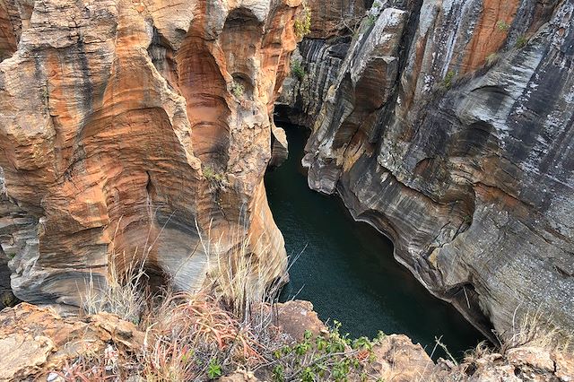 Nous partons ce matin en direction du sud du parc Kruger, en passant par celle que l’on appelle la "route panoramique". Cette route longe le canyon et offre plusieurs arrêts possibles, comme les surprenantes formations rocheuses de Bourke Luke Potholes et le point de vue de God’s Window.