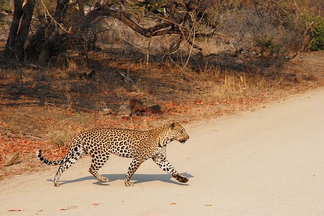 Lever très matinal, rapide collation (thé, café et biscuits) ; nous rencontrons notre Ranger à l'hébergement et partons pour un court transfert (environ 30 minutes) vers l’entrée sud-est du parc Kruger. En véhicule ouvert, nous profitons alors d'une journée entière de safari privé dans le parc, encadré par un/des Ranger(s) professionnel(s).