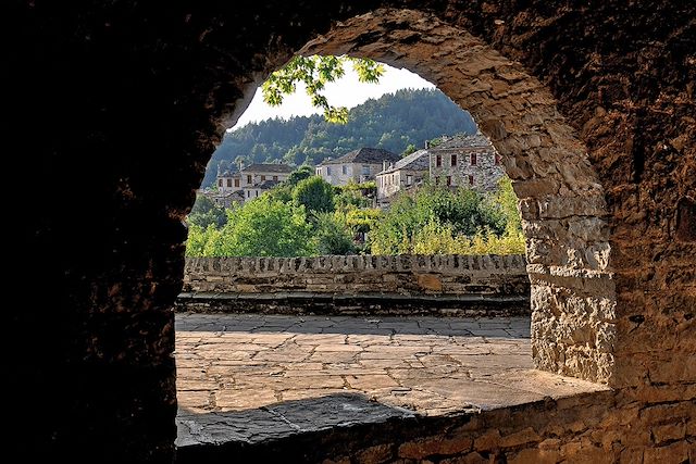 Après l’effort, détente dans le village traditionnel d’Aristi, aux maisons de pierre typiques de Zagori.