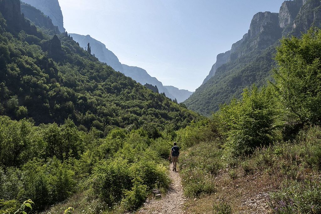 Aujourd'hui, vous garerez votre voiture à Aristi. Un transfert sera organisé par l'agence pour assurer votre logistique entre les points de départ et d'arrivée, vous permettant de traverser la gorge de Vikos. C'est une traversée à sens unique, totale ou partielle, selon la décision des autorités.. Inscrites au Guinness Book comme les plus profondes du monde proportionnellement à leur largeur. Le sentier, bien balisé mais exigeant, offre des panoramas spectaculaires sur les parois rocheuses et la rivière Voidomatis. La région se distingue également par ses ponts de pierre en arc enjambant les affluents.