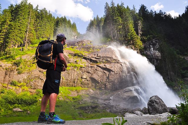 Nous abordons le massif alpin qui sépare le Tyrol autrichien de l'ancien "Tyrol Sud", aujourd'hui italien. Par la spectaculaire vallée de Krimmler Achental, nous remontons le long des cascades les plus hautes d’Europe (plus de 400m) jusqu'au refuge de Krimmler Tauernhaus. L’après-midi, détente ou possibilité de monter dans une petite vallée qui débouche sur un glacier. Nuit au refuge.
