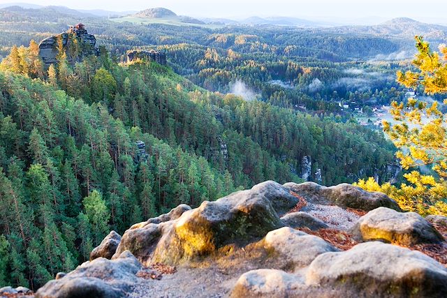 Départ en bus public pour une très belle randonnée à travers le parc national de la Suisse bohémienne, un magnifique écrin naturel composé de belles forêts, canyons, cascades et autres formations rocheuses aux formes très caractéristiques. Déjeuner sous forme de pique-nique. Retour à Decin en bus public. Dîner à l'hôtel. Nuit à Decin.