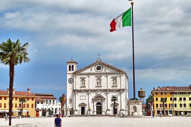 Aujourd'hui, vous quittez Udine par l'ancienne voie romaine « Via Claudia Augusta » en direction du sud. Dans le vaste paysage frioulan, vous parcourez les petits villages caractéristiques de la région jusqu'à Palmanova, ancienne ville fortifiée en forme d'étoile à neuf pointes.