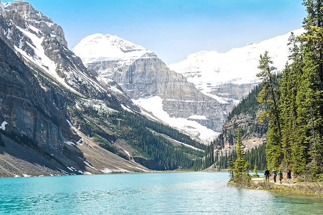 Notre exploration du parc de Banff se poursuit avec la découverte de deux sites phares : le lac Louise et le lac Moraine. Émerveillez-vous devant les eaux couleur émeraude du lac Louise, avec en toile de fond l’impressionnant glacier Victoria, et poursuivez par une randonnée sur le sentier Larch Valley au cœur d’une forêt de mélèzes au pied desquels vous vous sentirez tout petit. Ce sentier offre de superbes points de vue sur la vallée des dix sommets et du lac Moraine, secteur particulièrement protégé car peuplé de grizzlis. Si la condition du groupe le permet nous marcherons jusqu’au col Sentinel d’où vous aurez une vue panoramique sur Paradise Valley qui, croyez-nous, porte bien son nom !