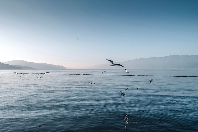 Transfert à la gare puis nous prenons le train à grande vitesse vers Dali. Après notre arrivée à Dali, nous arpentons le marché d'un village à proximité, Xizhou, découvrant de nombreux produits locaux exotiques, point de départ de notre randonnée en direction du lac Erhai. Entre maisons de la minorité Bai blanchies à la chaux, ateliers d’artisans et champs cultivés, nous découvrons sur le chemin la tradition locale de l'indigo, tissus teintés, ayant fait la réputation du lieu en Chine et au-delà. L'arrivée au lac Erhai apparaît comme une véritable respiration : vaste, lumineux, paisible, encadré par les montagnes, il nous offre une fin de randonnée tout en douceur.