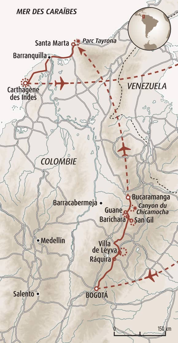 Découvrez une Colombie riche et dynamique en famille, un parcours multi-activité parfaitement adapté à toute la famille. L'expérience débute à Bogota au marché de Paloquemao par une explosion de couleurs et de saveurs, à la recherche de fruits inconnus. Vous participez aussi à une initiation à la gastronomie colombienne en confectionnant l'emblématique empanada. Vous remontez au nord, au village colonial de Villa de Leyva et découvrez ses lieux incontournables par un tour personnalisé à vélo. La route des Andes se poursuit vers Barichara avec au programme, randonnée sur un sentier royal et rafting. La prochaine aventure se trouve sur la côte Caraïbes, au parc Tayrona, lieu de rencontre de la jungle tropicale et de plages idylliques, puis à Carthagène des Indes pour approfondir la dimension culturelle de votre voyage.
