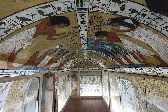 Explorez la Vallée des Rois et vibrez au contact de l’histoire, où reposent les pharaons dans leurs tombeaux richement décorés. Poursuivez avec la majestueuse Vallée des Reines, et notamment le temple funéraire de la reine Hatchepsout, chef-d’œuvre d’architecture et de finesse, ou encore les colosses de Memnon, sentinelles silencieuses de l’histoire.