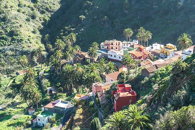 Nous rejoignons Vallehermoso où le petit centre historique de ce village présente des maisons traditionnelles aux murs blancs et en bois noble.