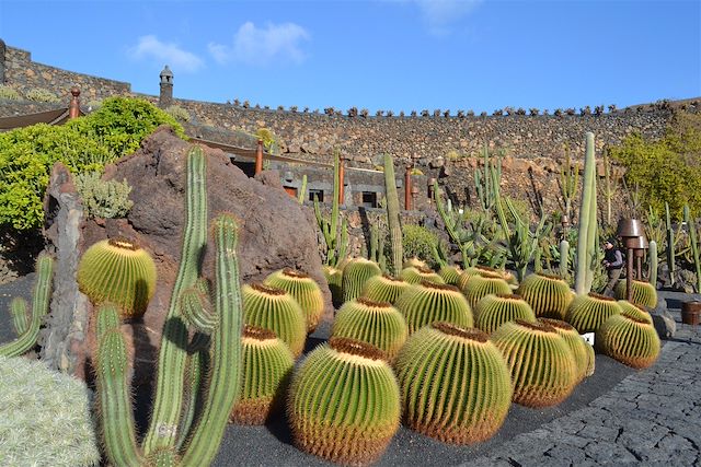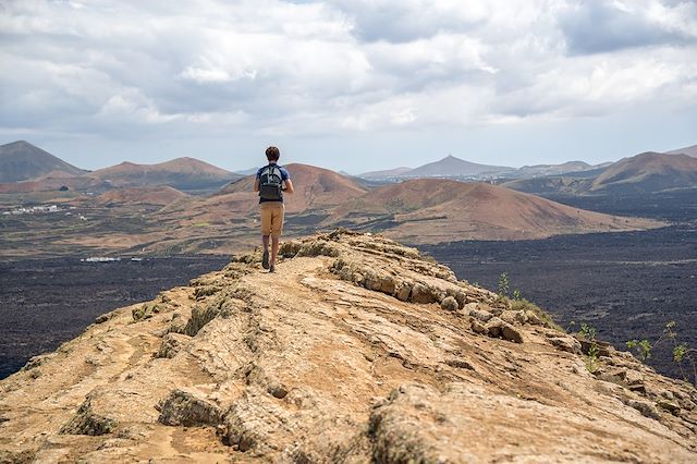 A une centaine de kilomètres des côtes africaines, l’archipel des Canaries est composé de sept îles volcaniques très contrastées ; on a coutume de dire qu'il est à lui seul un continent en miniature. Lanzarote en est l’île la plus orientale, elle présente un relief peu élevé et un aspect aride, notamment dans le centre. Elle est parsemée d’oasis et de villages blancs, et des centaines de cônes volcaniques se profilent à l'horizon. Ces paysages préservés depuis 1974 par la création du parc national de Timanfaya, témoignent d'un passé volcanique tumultueux qu'on peine à imaginer. L’est de l’île, est plus verdoyant, et les pentes se parent au printemps de tapis de fleurs. Au nord de ces montagnes, d’impressionnantes falaises plongent dans l’océan et offrent de fabuleux belvédères sur Graciosa, petite île avec deux très beaux villages, des paysages de rêve et des plages désertes. Lanzarote doit également beaucoup à l’architecte César Manrique qui a grandement contribué à la protection de l’île et a su apporter une touche artistique colorée, originale et respectueuse de l'environnement, tout en restant discret. Un surprenant archipel, où la mer n’est jamais loin, offrant une sensation d’immensité et de quiétude absolue.