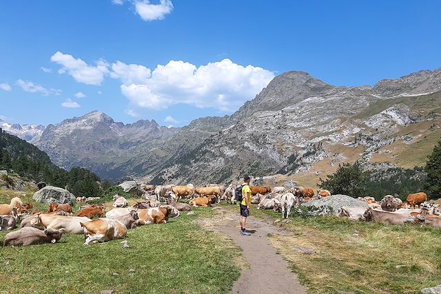 Nous aimons relier marche et contemplation pour ressentir pleinement les Pyrénées de Benasque. Ce voyage s’adresse aux passionnés de randonnée qui veulent allier immersion dans la montagne et confort soigné. Nous parcourons le massif de la Maladeta, entre glaciers, sommets granitiques et lacs d’altitude, en nous laissant surprendre par la variété des paysages et la pureté de l’air. Chaque étape nous ramène à notre camp de base, un hôtel *** confortable au pied des hauts sommets, où nous retrouvons repos et convivialité. Une échappée vivante qui mêle nature, altitude et sérénité.