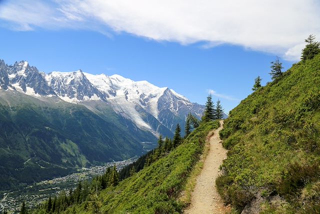 Nous avons fait une très belle randonnée entre Chamonix (Les Houches) et Modane. Il y avait un peu de monde les deux premiers jours sur le sentier du tour du Mont Blanc, mais quels paysages ! Le circuit prévu permet de n'avoir qu'un seul transfert en taxi. Les hébergements sont variés (différents types de refuge, gîte...) et les repas quasiment toujours excellents. Les étapes de randonnée sont bien équilibrées et permettent de ne pas arriver trop tard les jours de pluie, et le dénivelé, raisonnable, permet de porter sans peine le sac de la semaine.