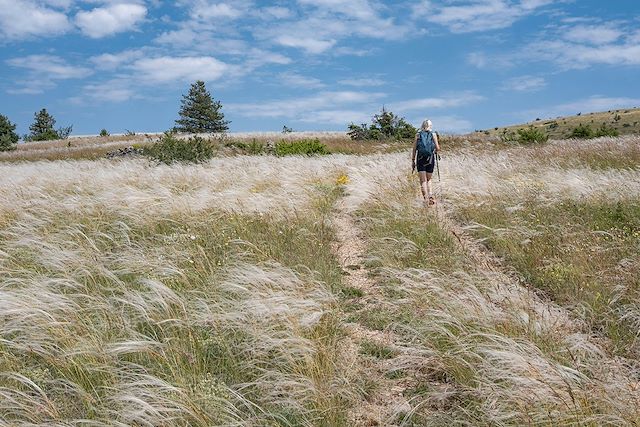 Aujourd'hui, la randonnée gagne en altitude jusqu'aux corniches des Gorges de la Jonte, où vous aurez peut-être la chance d'observer les vautours en vol. Vous faites vos premiers pas sur le Causse Méjean, un plateau où la vie pastorale rythme le quotidien des habitants. La journée s'achève par un dîner et une nuit dans un gîte en pleine nature sur le Causse Méjean.