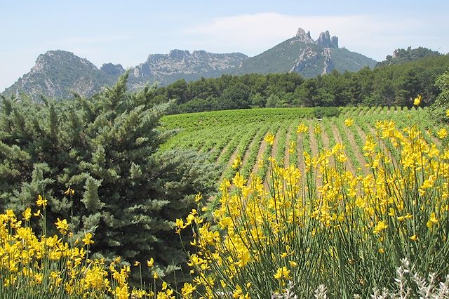 Les amateurs de bons vins ne s'y trompent pas : randonner de Vacqueyras à Gigondas, c'est une étape incontournable pour les promeneurs au nez fin. Les plus sportifs d'entre vous auront les images du Tour de France au pied du mont Ventoux. Quoi qu'il arrive, tout le monde s'émerveille face à la chaîne de montagnes des Dentelles de Montmirail, et chacun profite de la douceur du climat. Une semaine de contrastes entre l’abondance des riches vallées d’abricotiers et d’oliviers face à l’aridité des versants sud et des paysages lunaires du géant de Provence…