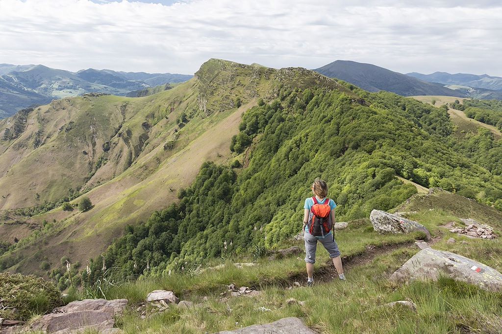 Lors de cette étape, vous traverserez dans un premier temps l’agréable et préservée campagne Basque avant d’arriver à Ainhoa, magnifique village-bastide du XIIème siècle. Puis de franchissements de petits sommets en passage de cols, le parcours se faufile, contournant l’Ereby (583m), plus loin l’Atxulegi (617m), puis bientôt apparaît le col Zuccuta, superbe belvédère. De là, vous pourrez rejoindre le col des Veaux par la piste ou bien, par beau temps, en restant toute crête, hors GR10 continuer jusqu’au pic Gorospil (691m), et profiter du panorama sur les montagnes basques.