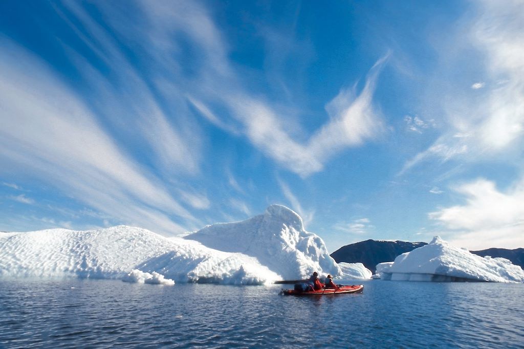 Une côte bien découpée, une multitude de petites îles, l'Inlandsis tout proche déversant ses icebergs, les vestiges des premiers Vikings, la pêche, voici les ingrédients d'une randonnée en kayak qui vous permettra de découvrir les multiples aspects du Groenland.