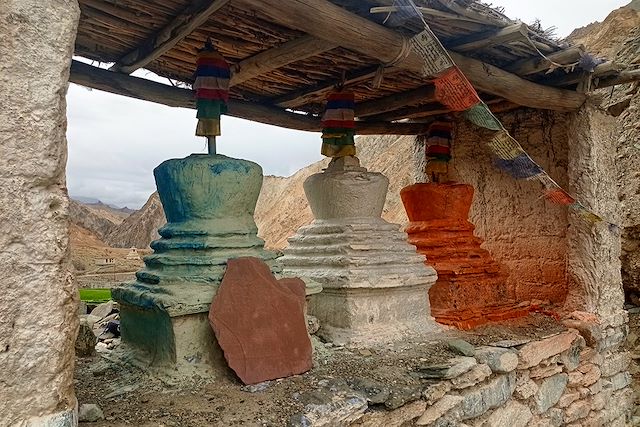 Nous partons très tôt le matin pour regagner les rives de la Tsarap Chu que nous longeons jusqu'au monastère de Phukthal, perché à flanc de falaise et célèbre pour sa grotte naturelle où méditaient des moines dès le premier millénaire. Son cadre, son architecture troglodyte et son atmosphère en font l’un des lieux bouddhiques les plus spectaculaires et préservés de l’Himalaya. La légende raconte que Padmasambhava (le précieux gourou "né du lotus" qui transmit le Dharma en Himalaya) vint en ce lieu. Désireux de boire de l'eau pure et claire, il jeta son bâton. Le bâton se planta sur la crête au-dessus d'une grotte où jaillissait une source. Il devint un genévrier sacré et, autour de la grotte se bâtit le monastère. Après la visite, nous retraçons nos pas le long du Tsarap Chu, pour revenir à Yaytah.