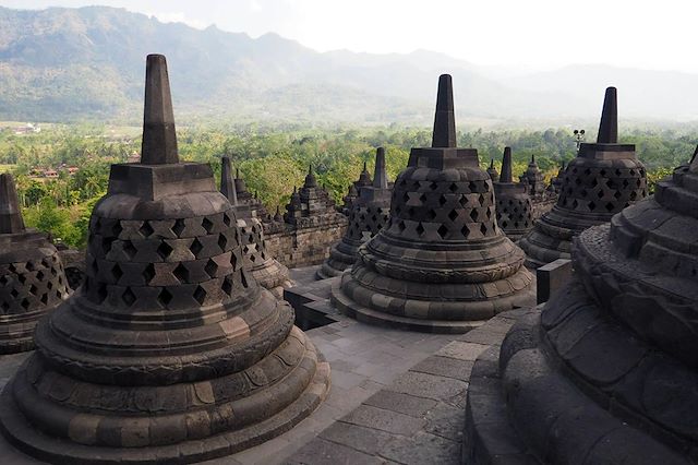 La matinée est consacrée à la visite de Yogyakarta. Au cœur des quartiers anciens, nous découvrons les vestiges du Taman Sari, ancienne résidence d'agrément des sultans du XVIIIe siècle, réputée pour le charme de ses jardins et de ses plans d'eaux. Sur la place Alun-Alun, le Kraton, bâti en 1756, est aujourd'hui encore la résidence du sultan et de sa famille. Nous le visitons avant de nous rendre au centre de la ville et de découvrir le métier des artisans de batik (tissu traditionnel) et de Wayan Kulit, une marionnette de cuir utilisée pour les spectacles d’ombres. Après le déjeuner, nous partons en direction du temple de Barong pour une balade à pied à la découverte de la campagne javanaise et de petits temples hindouistes méconnus. Puis, court transfert pour le temple de Prambanan, magnifique temple hindouiste dont l’architecture rappelle celle des temples d’Angkor. Construit, dit-on, par le roi Dhaksa, il s'agit d'un remarquable ensemble sacré du IXe siècle constitué de nombreux sanctuaires disposés autour d’un édifice principal élevé à la gloire de Shiva. Nous nous rendons ensuite, en début de soirée, dans un petit théâtre à proximité pour assister à un spectacle de marionnettes Wayang Kulit, théâtre d’ombre traditionnel et populaire à Java et Bali. Les Wayang Kulit sont des figurines plates de cuir maintenues par des tiges et manipulées par le dalang derrière un drap et devant une lampe. Le dalang orchestre le spectacle et donne sa voix aux personnages. Il est généralement accompagné d’un orchestre d’instruments de percussion traditionnel (gamelan) et d’une flûte. Les histoires contées et chantées reprennent les légendes javanaises et un mélange de légendes hindouistes, des images islamiques ou chrétiennes, ou encore des grandes figures de l’histoire d’Indonésie.