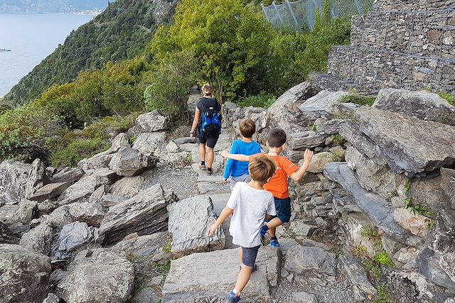 Offrez à votre famille des journées de randonnée, de découverte et de baignade aux Cinque Terre, un véritable paradis entre mer et montagne ! Depuis un seul hébergement, chaque jour, partez explorer cette région magique à travers des sentiers pittoresques reliant ses villages colorés. Après l'effort, plongez dans les eaux cristallines, que ce soit lors des randonnées ou en fin de journée. Toute la famille pourra participer à un atelier culinaire pour apprendre à maîtriser la sauce pesto alla genovese, et vous vivrez également une belle balade en bateau le long de la côte. Une aventure inoubliable pour toute la famille !