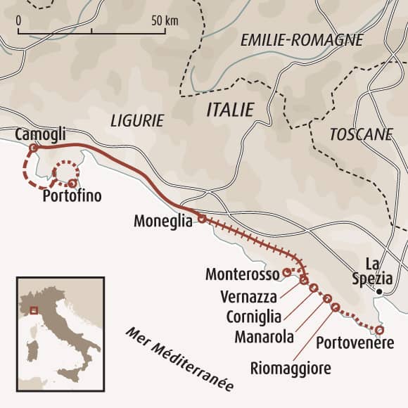 Le jour 1 dans l'après-midi à Moneglia, Deiva Marina ou à La Spezia, selon la version d'hébergement choisie.