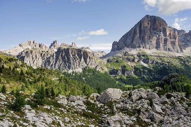 Les Dolomites, un nom qui fait rêver tout randonneur... A l’évocation de cette chaîne de montagnes, inscrite au patrimoine mondial de l'Unesco, il suffit de fermer les yeux pour visualiser la blancheur de sa roche qui retient si bien la lumière du soir et contraste avec le ciel cyan et le vert éclatant des alpages. Cette magnifique itinérance propose de découvrir les sites les plus emblématiques du massif : les pics des Tre Cime, l'alpage de Pratto Piazza, l'amphithéâtre de pierre de Fanes, le désert insolite des Tofane et tant d'autres. Découvrez toute cette variété de la meilleure des façons : à pied, en immersion nature dans le massif et sans prendre de transfert pendant la randonnée. Votre accompagnateur sera en mesure de vous proposer quelques variantes sur place, selon le niveau et les envies de chacun. Et pour les plus courageux, une petite ascension optionnelle de la Croda del Beco (2810m). Un trek dans l’un des plus beaux massifs alpins d'Italie, à faire absolument !