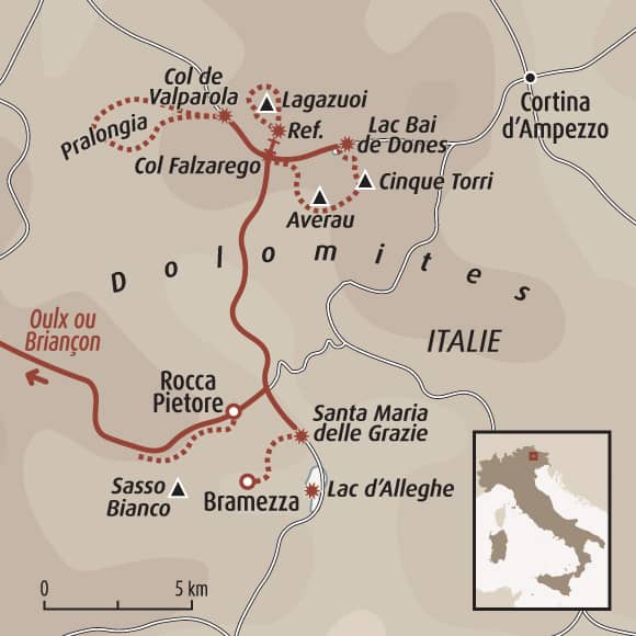 Sans le Pack Mobilité, rendez-vous directement à l’hôtel à Rocca Pietore à 18h (précisions en convocation).