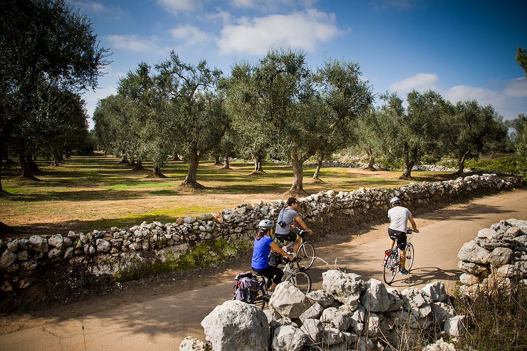 Le Salento est une province des Pouilles qui offre tous les ingrédients d'une destination immanquable d'un séjour à vélo. Majoritairement plat et longeant l’une des plus belles côtes de l’Italie, ce séjour guidé à vélo met l'accent sur une certaine philosophie de la lenteur avec des étapes de 30 à 60km par jour sur des routes secondaires, entrecoupées de pauses en bord de mer et d'ateliers gastronomiques. Éblouissante de lumière et de couleurs, à l'image de ses villages blancs immaculés, sa mer turquoise et le vert de ses oliviers millénaires, la région propose une cuisine caractéristique et de terroir ayant le goût du soleil.