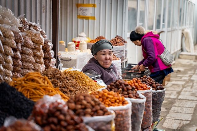 La cuisine d'Asie centrale est généralement saine, assez variée et vous aurez souvent l'occasion de déguster de copieux repas traditionnels. Sachez que la viande de mouton constitue une part importante de la gastronomie locale et est souvent préparée sous forme de petites brochettes grillées, kebabs ou shashliks, raviolis. On retrouve certaines saveurs du Moyen-Orient et même de la Méditerranée et les influences sont chinoises, russes, persanes, orientales, etc.