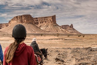 Accompagnateurs : 1 guide équestre marocain francophone + 1 palefrenier (à cheval) au-delà de 5 cavaliers.