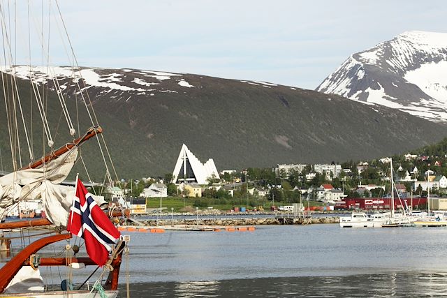 Nous profitons de cette matinée libre pour explorer Tromsø, située au bord du fjord, entre les montagnes dont les sommets sont souvent enneigés à cette période de l'année. Ambiance nordique garantie dès le port, où les maisons colorées dominent les petits bateaux de pêche.