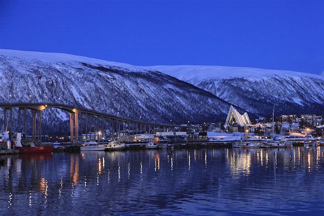 Arrivée à Tromsø, à 69° Nord. Après avoir récupérer nos bagages, transfert libre en bus de ligne vers le centre de Tromsø (à régler sur place) et installation à l'hôtel situé proche du port.