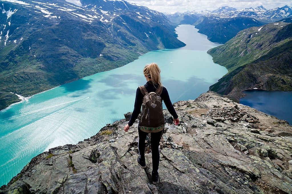 Le parc national du Jotunheimen est un véritable paradis pour les randonneurs. Il est aussi à raison le plus populaire de Norvège. Un univers de montagne en bord de fjord, des paysages uniques, des sommets à perte de vue. La sensation des grands espaces s'empare vite de vous dans cette montagne la plus haute du pays. Vous randonnez dans un univers extrêmement préservé avant de retrouver le confort de votre refuge ou votre hôtel le soir. Un itinéraire sans voiture, l'esprit libre.