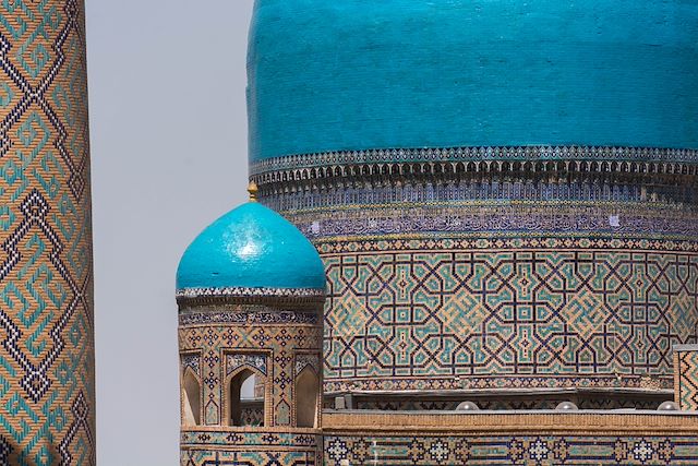 Samarcande est l'une des villes les plus anciennes et l'un des plus vieux centres culturels du monde. Avec une histoire de 25 siècles, c'est une ville de légende. Samarcande était le centre de la Sogdiane. Elle survécut aux multiples invasions, d'Alexandre le Grand - qui s'enthousiasmait déjà sur sa beauté - aux Arabes, en passant par les Mongols. Timour le Grand en fit sa capitale, qu'il voulait capitale du monde. A travers toutes ces périodes, la culture de Samarcande se développa, s'entremêlant au fil des siècles avec celles de l'Iran, de l'Inde, de la Mongolie, de la Chine... Elle a gardé de son passé une forte influence tadjike, les Ouzbeks ne prenant le contrôle de la ville qu'au 16ème siècle. Elle a conservé ses coupoles vernissées, ses murs aux couleurs vives et ses mausolées qui constituent autant de joyaux de l’architecture d’Asie centrale.
