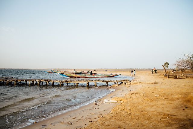 Le matin, départ en minibus pour le delta du Saloum à Ndangane après une halte colorée au marché de Ngoé ou Sandiara. Rencontre avec notre équipe de piroguiers, pique-nique au bord de l'eau et baignade. Navigation vers le petit port de pêche de Djifer jusqu'à l'île de Dionwar. Balade à travers l’île et le village de Niodior, ourlés de cocotiers. Traversée des vergers de manguiers, d'anacardiers, des jardins maraîchers des femmes et du pont sur pilotis jusqu’à notre bivouac de Guior sous les palmiers. Ambiance extraordinaire au soleil couchant.