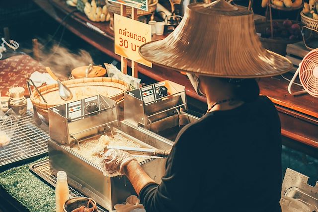 La cuisine de rue a également été rendue célèbre depuis plusieurs années. A Bangkok, une balade est prévue pendant ce voyage, avec pour fil rouge la cuisine de rue et ses différents étals disséminés dans le quartier chinois. A Chiang Mai, nous pourrons également tester la cuisine de rue et plusieurs plats traditionnels. Nos arrêts dans les marchés seront également l'occasion de découvrir de nombreux fruits, légumes, condiments ...