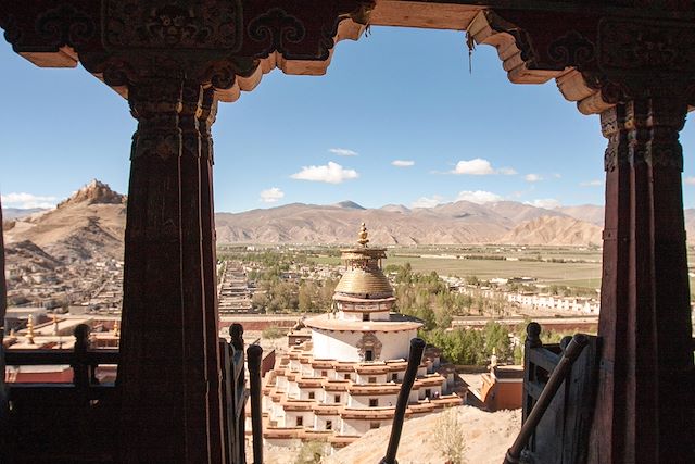 Nous reprenons la route pour la ville de Gyantse, à 90 km à l’ouest, au carrefour des anciennes routes commerciales de la vallée de Chumbi, de Yatung et du Sikkim. La route longe le lac puis s’enfonce dans une nouvelle vallée, dominée par les glaciers. Il n’est pas rare de voir de nombreux troupeaux profiter de ces vallées. Nous franchissons le col de Karo La (5050m) et admirons la vue sur le glacier qui le surplombe. Possibilité de se rendre à un point de vue, mais attention, à ces altitudes le souffle est court.