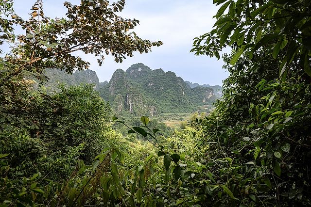 A l’arrivée, installation dans un petit lodge lové au pied d’un piton karstique. Temps libre.