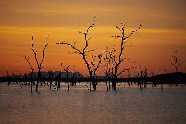 Situé à la frontière entre la Zambie et le Zimbabwe, le lac Kariba est le deuxième plus grand lac artificiel d'Afrique. Créé suite à la construction du barrage sur le fleuve Zambèze, il s4etend sur plus de 280 km de long et 40 km de large. Cet écosystème unique est réputé pour ses arbres pétrifiés qui servent de nichoir aux Pigargues Vocifer. C'est aussi un véritable paradis pour la faune.