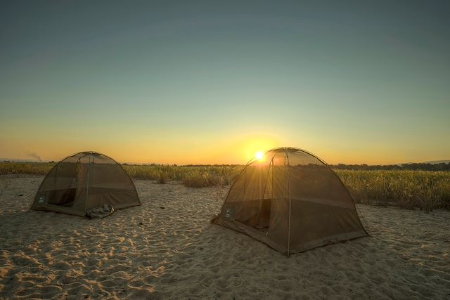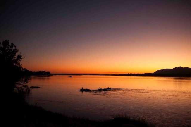 Après le déjeuner, temps de repos bien mérité, bercés par le cri des pygargues vocifer et des hippopotames... Puis départ sans bruit à bord de vos canoës sur le Zambèze jusqu'à votre étape du soir en bivouac.