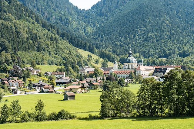 Montée au Lösertaljoch (1682m) puis au Scheinbergjoch (1764m, en option, en fonction du temps) où s’ébattent de nombreux chamois. De ce dernier col, vous découvrez en enfilade toute la vallée de Linderhof jusqu’à Ettal. Descente à travers le cœur de l'Ammergau, jusqu’au château de Linderhof, ce petit "Versailles", avec également le pavillon mauresque et la grotte de Louis II (visite du château à votre charge). Site romantique, ancien pavillon de chasse de Louis II. Transfert en bus de ligne (15 minutes de trajet) au village d'Ettal, et son superbe monastère bénédictin.
