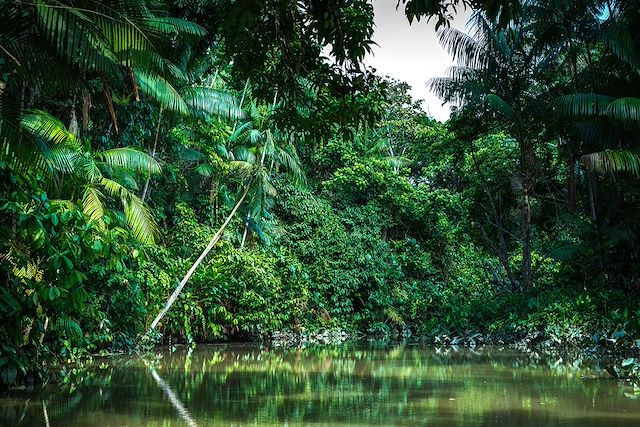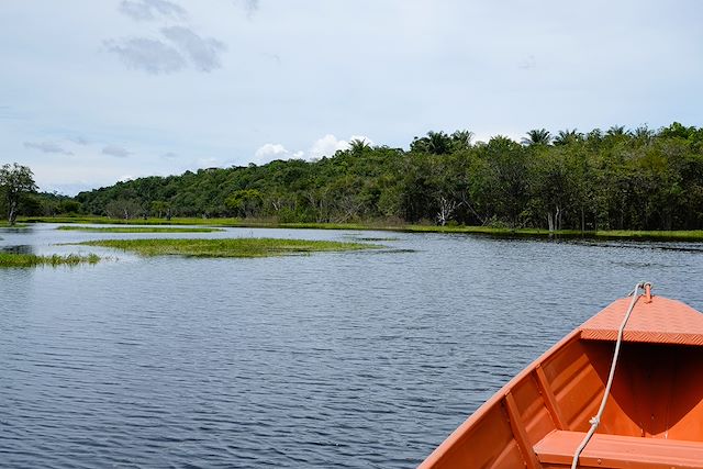 Notre aventure en Amazonie commence par un transfert à notre lodge que l'on accède uniquement en pirogue motorisée. Nos hôtes nous accueillent, nous font visiter les lieux et nous présentent les animaux qui ont élu domicile au lodge, avant de nous inviter à déjeuner. L'après-midi, nous faisons une excursion en pirogue motorisée pour découvrir la région. Une famille riveraine nous accueille et nous présente notamment son moulin à farine de manioc avant de faire une petite randonnée pour découvrir les fruits exotiques et régionaux de l'Amazonie. Le soir après dîner, possibilité d'aller se balader pour écouter les bruits de la jungle la nuit.
