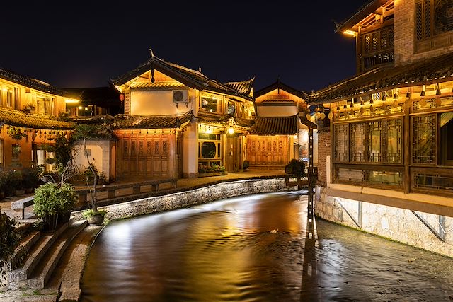 Route vers Lijiang, puis promenade dans la vieille ville jusqu’au parc de l’Étang du Dragon Noir, où l’eau reflète les toits anciens et les montagnes lointaines. Une dernière promenade apaisante avant de quitter le nord du Yunnan.