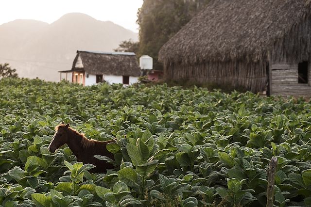 Une belle journée s'annonce, riche en rencontres et en activités ! Jolie promenade à vélo dans la vallée de Viñales, parmi les champs de tabac à la terre presque rouge et les "mogotes" calcaires qui lui confèrent un paysage unique reconnu par l'Unesco. Visite d'une ferme dédiée à la culture du tabac et de son séchoir. Continuation à travers la vallée jusqu'au point de départ pour rendre les vélos. Transfert en bus au petit village de Moncada pour un déjeuner bien mérité, chez Lázara. Dans l'après-midi, équipés de casques et de frontales, nous visitons la grotte de Santo Tomás, la plus grande de Cuba ! Retour au village et initiation au baseball, sport national de Cuba, auquel participent des enfants de Moncada. Si le temps s'y prête, nous pourrons disputer un match ! Il est également possible de sortir nos cerfs-volants pour les faire voler dans le ciel. Retour à Viñales pour le dîner et la nuit.