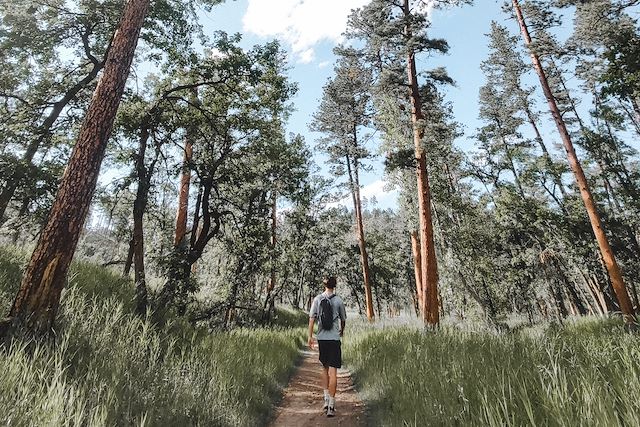 Le paysage est varié : prairies ouvertes, forêts de pins ponderosa, lacs aux eaux claires et spectaculaires formations rocheuses de granit. On en profite en roulement lentement, les fenêtres ouvertes, avant de laisse le véhicule de côté pour arpenter l'un des multiples sentiers de randonnée comme le Lovers Leap Loop : une courte et magnifique balade offrant de sublimes panoramas sur les Black Hills, hors des sentiers battus.