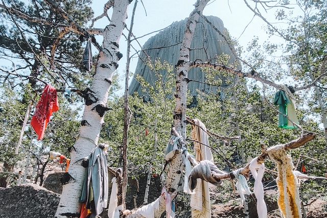Retour dans le Wyoming, puis vous prenez la direction du nord et du Monument National de Devil's Tower, un impressionnant monolithe de 386 mètres, sacré pour les tribus amérindiennes. Avec ses parois striées verticalement, il attire grimpeurs et randonneurs, notamment via le Tower Trail qui offre des vues panoramiques sur le géant minéral. Le Red Beds Trail vous offrira plus d'intimité et des panoramas tout aussi saisissants.