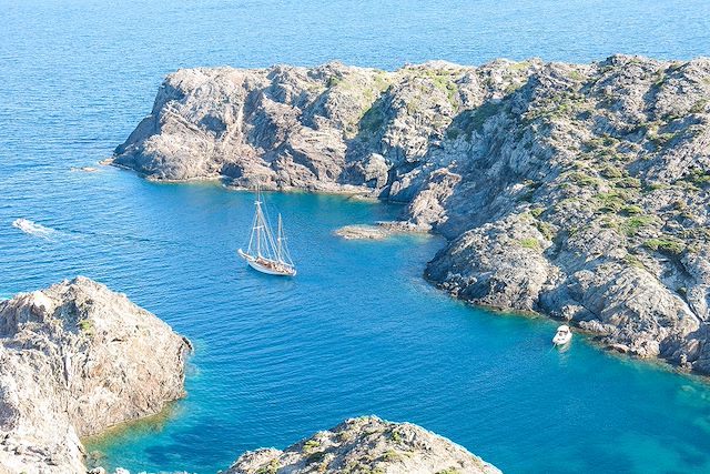 Partez à la découverte de la Côte Vermeille, sur les chemins du Fauvisme, où les célèbres peintres Matisse, Derain et l’illustre Dali ont laissé leur empreinte. Le long des rivages méditerranéens jalonnés de criques sauvages, sur les chemins surplombant la mer, notre itinéraire démarre du charmant petit port de Collioure où les artiste-peintres furent attirés par ses couleurs chatoyantes. Puis c’est à travers les terres viticoles de Banyuls que nos pas nous guideront. Ce sera ensuite l’arrivée en Espagne, avec son soleil et son ambiance chaleureuse, ses sentiers du littoral entre maisons blanches et jardinets fleuris, ses criques sauvages et ses grandes baies de sable avant la descente sur Cadaqués, village blanc niché dans l’anse d’une jolie baie. Par les chemins séculaires aux parfums de garrigue, le long des rochers sculptés par les vents, nous irons ensuite découvrir le Cap de Creus, dernier bastion des Pyrénées qui sombre dans les eaux profondes. Cadaqués la Magnifique nous ouvrira alors ses portes pour découvrir l’œuvre du grand maître Dali. Des hôtels au charme incontestable et la dégustation de la gastronomie catalane viendront compléter ce séjour.