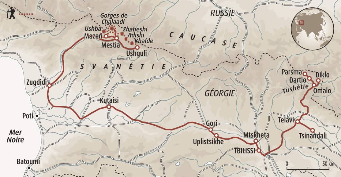 En Svanétie, un assistant guide anglophone se joindra au groupe pour les treks afin de pouvoir moduler le rythme du groupe sur ces marches plus engagées.